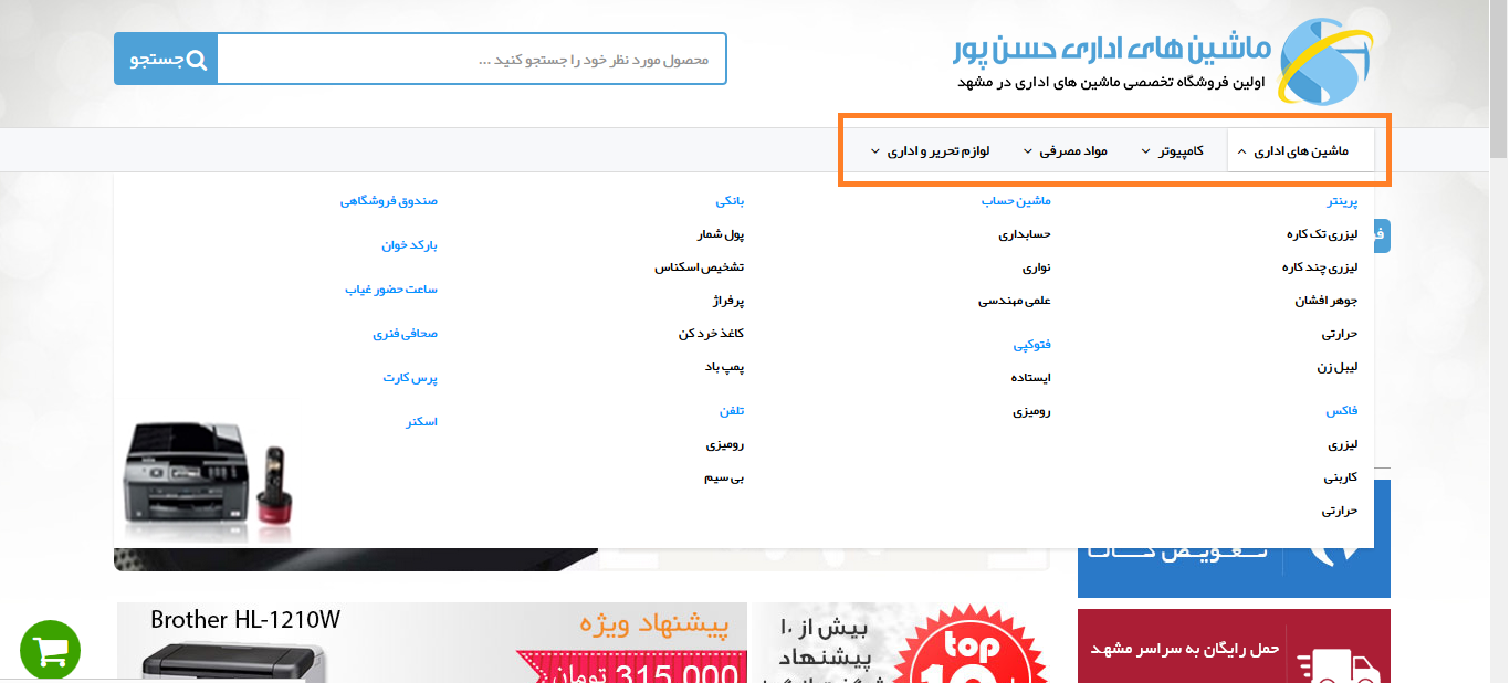 حالا نوبت به انتخاب کالا و افزودن به سبد خرید است. برای این کار با استفاده از منوی بالای سایت به بخش کالای مورد نظر بروید.(همانند تصویر زیر)