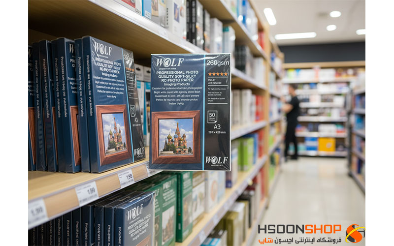 کاغذ ابریشمی ولف 260 گرم مدل Wolf Soft Silky A3 یکی از بهترین انتخاب ها برای چاپ عکس های حرفه ای و باکیفیت است. این محصول در ابعاد استاندارد 297 × 420 میلیمتر (A3) تولید شده و با وزن مناسب 260 گرم، استحکام بالایی در برابر آسیب های احتمالی دارد. جنس این کاغذ از نوع ابریشمی صاف (Soft Silk RC) بوده که سطحی لطیف و ظریف به چاپ می بخشد و باعث می شود تصاویر جلوه ای طبیعی تر و چشم نوازتر داشته باشند. این کاغذ به صورت یک طرفه طراحی شده و در هر بسته تعداد 50 برگ قرار گرفته است که از نظر اقتصادی نیز گزینه ای مقرونبهصرفه برای عکاسان، آتلیه ها، طراحان و حتی استفاده های شخصی به شمار می رود.