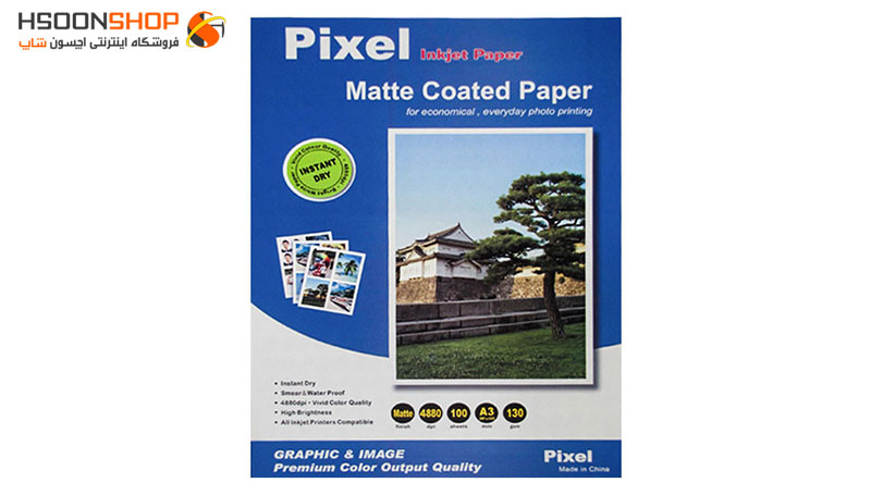 این کاغذ با ابعاد استاندارد 297×420 میلی متر (سایز A3) طراحی شده و وزن آن 130 گرم است؛ وزنی که تعادل خوبی بین ضخامت و سبکی برقرار می کند. پوشش کتد مات روی سطح کاغذ باعث می شود جوهر به شکل یکنواخت جذب شود و پخش یا لکه نشود. این ویژگی در نهایت به چاپی شفاف، تمیز و با جزئیات بالا منجر خواهد شد.